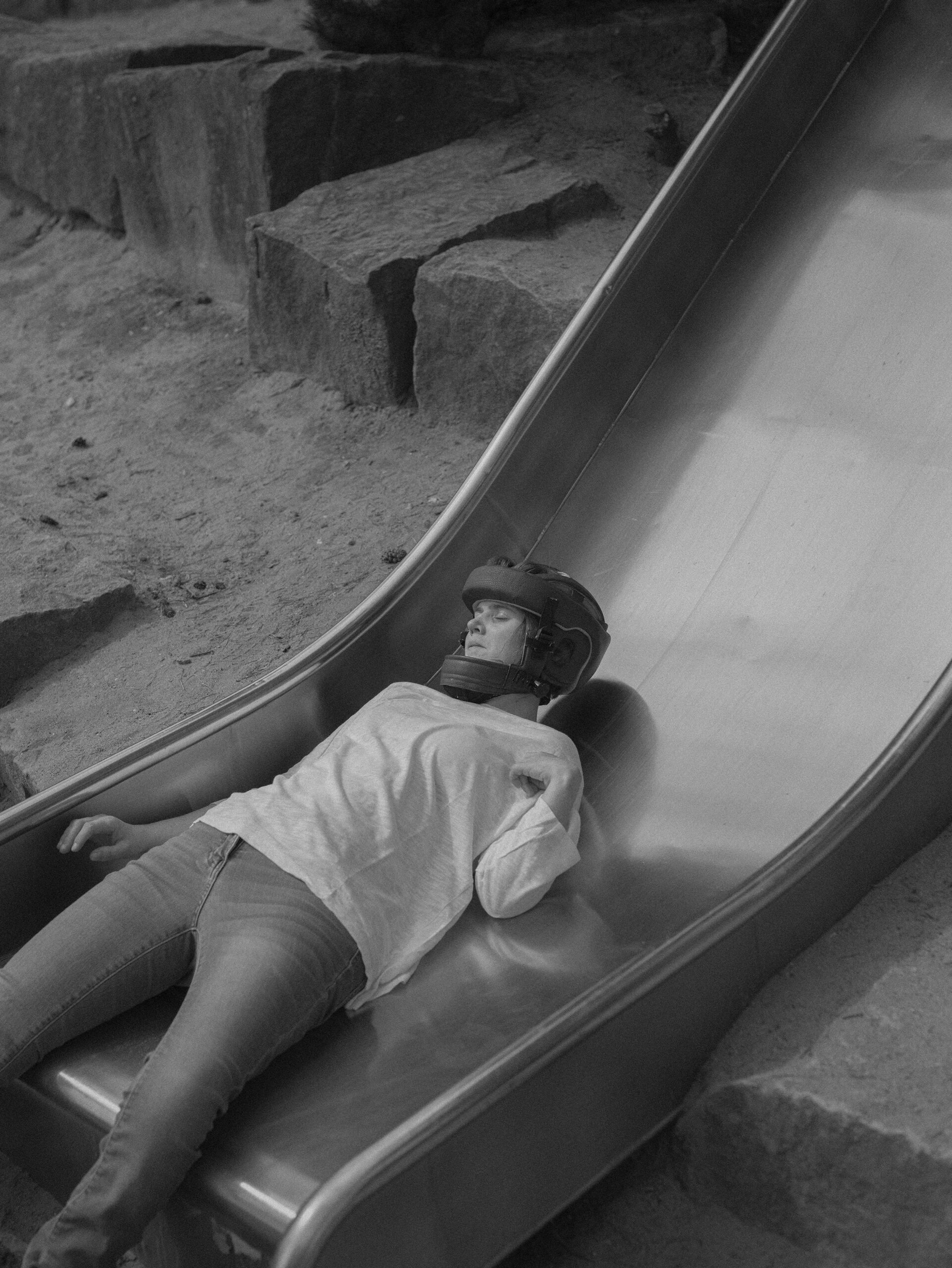 Allant à la rencontre d’autres corps, déployés ou empêchés, aux parcours singuliers, elle compose un récit collectif porté par un élan d’émancipation, de réappropriation et de réconciliation. Les rencontres/portraits qui le jalonnent sont, pour la photographe, le moyen de rendre visible la complexité induite par les injonctions sociales, la normalisation et les stéréotypes.